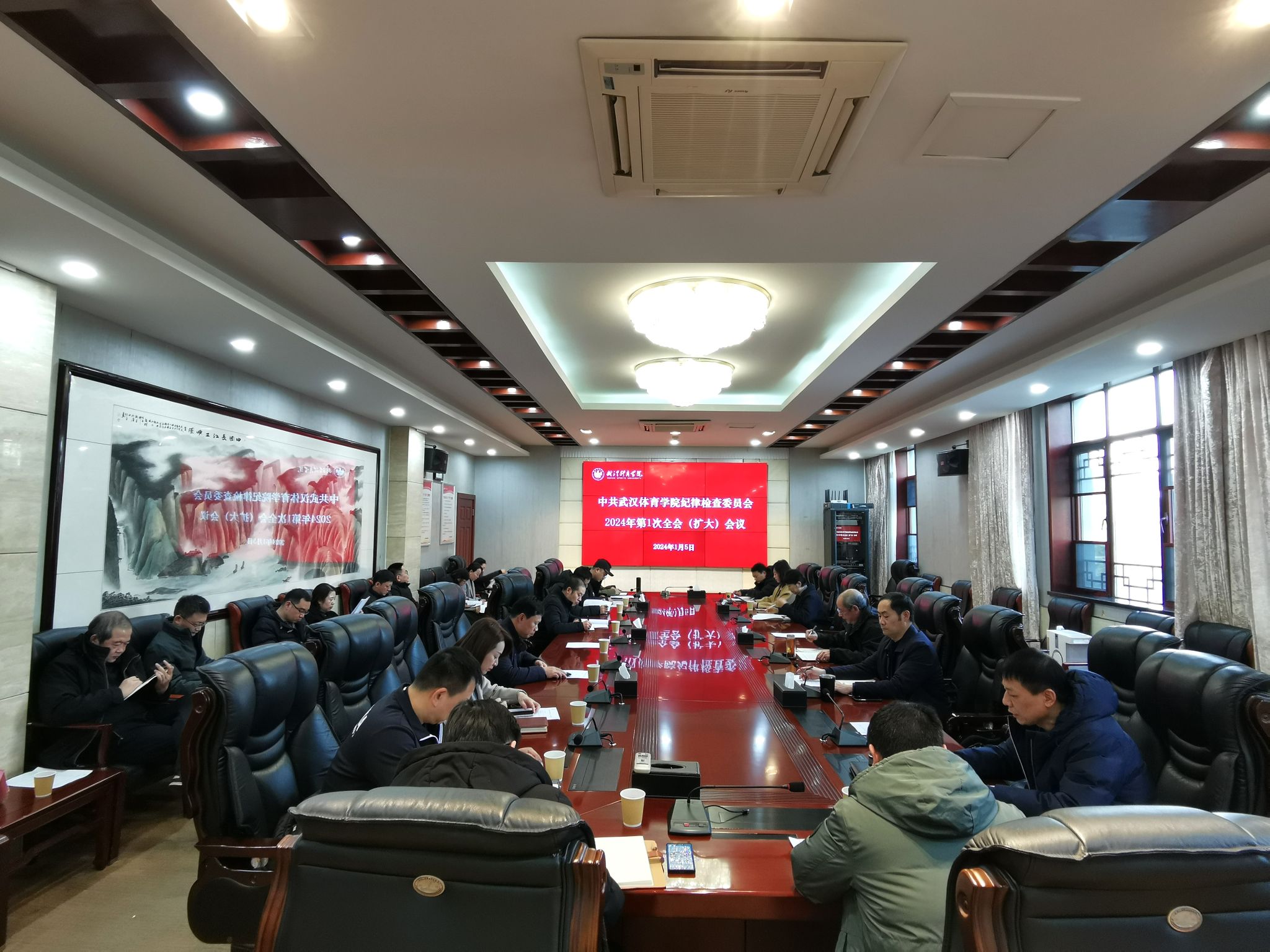 1月5日下午,校纪委书记、监察专员朱建中主持召开学校纪委2024年第一次全体会议(扩大),学习贯彻习近平总书记关于全面从严治党目的、严管与厚爱干部、加强纪检监察干部队伍建设三个方面和教育整顿工作系列重要指示精神;传达学习李希在中国纪检监察学院北戴河校区调研座谈会上的讲话精神以及中央纪委办公厅近期下发的有关文件精神;集中研学《中国共产党纪律处分条例》;通报近期纪检监察干部及其他干部严重违纪违法典型案例,教育引导全体纪检干部以案为鉴、警钟长鸣,进一步增强廉洁自律意识;按照省纪委第六督导组第五轮督导检查工作要求,研究部署纪检监察干部队伍教育整顿专题组织生活会有关工作,征求与会人员对学校纪委领导班子、2023年度纪检监察工作意见。校纪委委员、二级单位纪检委员、全体专职纪检监察干部参加会议。